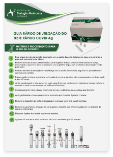 Recomendamos que você baixe o Teste Rápido COVID Ag - Procedimentos de coleta da amostra, execução do ensaio e interpretação dos resultados, imprima e deixe em lugar vísivel, no ambiente onde são realizados os testes.