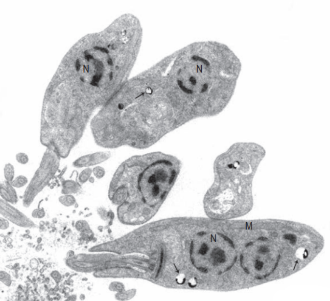 As leishmanioses são doenças causadas por protozoários, um grupo de organismos compostos por indivíduos com uma única célula e que possuem núcleo celular bem definido. Diferentes espécies de protozoários são capazes de infectar os seres humanos. Os protozoários causadores das leishmanioses são pertencentes ao gênero Leishmania, que engloba espécies que requerem dois hospedeiros diferentes para completarem seu desenvolvimento. Além disso, os protozoários do gênero Leishmania aparecem em duas formas, chamadas de: i. promastigota, que possui flagelos (e infectam hospedeiros invertebrados, no caso os insetos vetores) e; ii. amastigota, sem flagelo livre (e que atuam como parasitas nas células dos hospedeiros vertebrados).