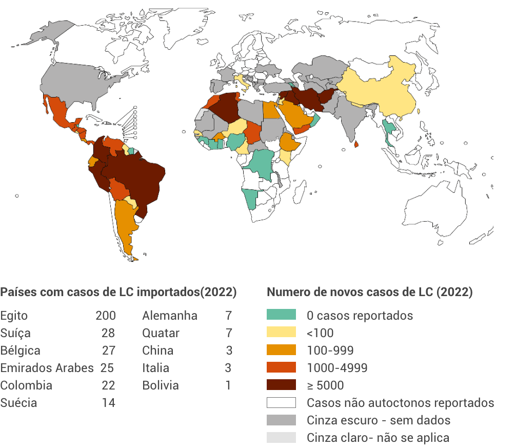 Status epidemiológico de leishmaniose cutanea mundial (2022)