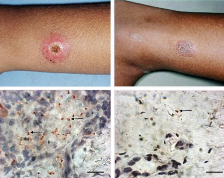 A leishmaniose cutânea (LC) é a forma mais comum e causa lesões cutâneas, que podem se apresentar como úlceras, nódulos ou placas eritematosas, características que podem ser similares a outras doenças dermatológicas, como dermatite, infecções fúngicas, sífilis, tuberculose cutânea, e até mesmo alguns tipos de câncer de pele. Essa semelhança clínica pode levar a diagnósticos incorretos, atrasos no tratamento e, consequentemente, à progressão da doença. Essas lesões podem deixar cicatrizes permanentes e causar algum tipo de incapacidade séria ou estigma. Cerca de 95% dos casos de LC ocorrem nas Américas, na bacia do Mediterrâneo, no Oriente Médio e na Ásia Central. Estima-se que 600.000 a 1 milhão de novos casos ocorram anualmente no mundo, mas apenas cerca de 200.000 são reportados à OMS.